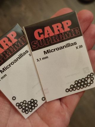 Microanillas para montajes de Carpfishing, sobres de 20 unidades. Se hacen envíos. Búscanos en nuestras redes sociales. No leer: carpsupreme, pesca, pescador, boilies, boilie, pellet, carpa, barbo, blackbass, carrete, caña, rapala, oferta, Carpfishing, flyfishing, lucio, trucha, señuelos, cucharilla, pescar.