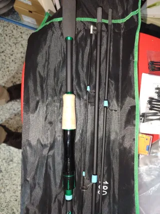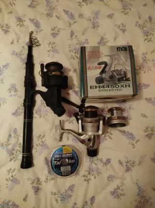 Se vende equipo de pesca nuevo, no se ha llegado a usar. Incluye una caña de pescar de casting de 2.4 metros y un carrete. - Caña telescópica 240cm fibra de carbono, acción media, W 10-20gr, fantástica terminación, anillas cerámicas, sujeción goma EVA muy cómoda. - Carrete, aluminio CNC, Ratio 7.2:1, peso 230gr, anti reversible, 8 kilos de freno, 13+1 bolas de Rodamiento. - Funda protectora. - Pack de señuelos a parte, en función de los que se elija será el precio, pregúntame por ellos y te digo.