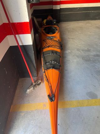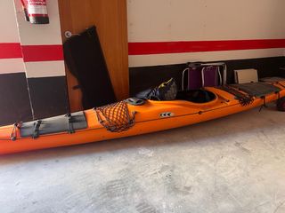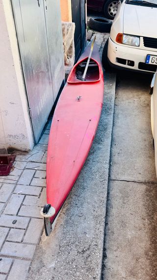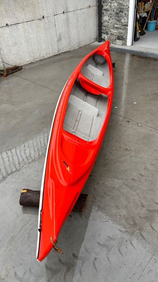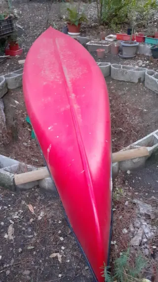 Canoa kayak de poliester tipo canadiense en color naranja. - Dos asientos. Pero caben 3 personas - Regalo 2 chalecos salvavidas y una vela. - Ideal para aguas tranquilas. - Artesanal, fabricada por un carrocero. - Remos ligeros hechos de fibra de carbono. - Tambor guarda-objetos estanco.