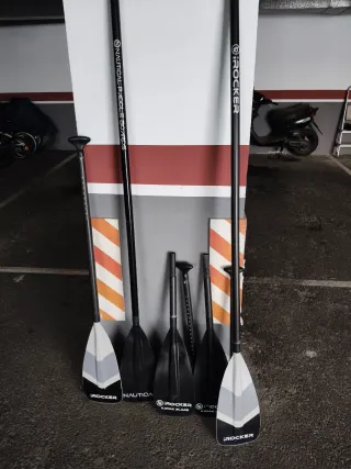 Conjunto de remos para paddle surf y canoa. - Remos de la marca iRocker y Nautical. - Palas de diferentes tamaños y diseños. - Mangos ajustables.