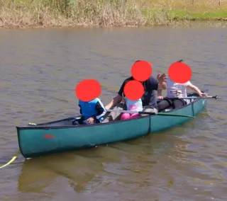 Canoa canadiense, para dos adultos, pueden llegar a ir 3 , tres juegos de remos. Es para agua dulce , muy espaciosa, regalo también tabla de windsurf preparada para hacer paddle surf. La canoa se encuentra en el pantano del Burguillo.
