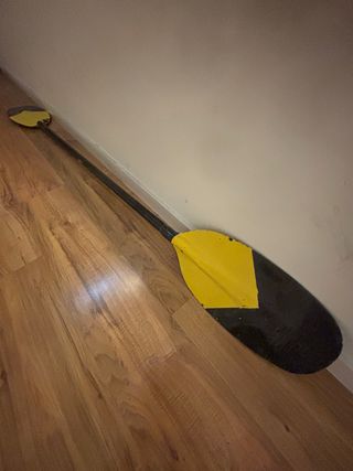 Se vende remo para kayak o canoa. Diseño llamativo en negro con detalles en amarillo. - Pala ancha para mayor propulsión. - Eje largo para un buen alcance.