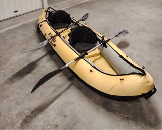 Canoa hinchable para dos personas, en muy buen estado y casi sin uso. - Color amarillo. - Incluye remos.