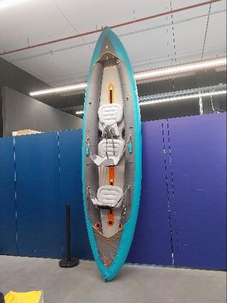 TOTALMENTE NUEVA EN CAJA SIN ABRIR. kayak hinchable de gama alta para dos personas. Está fabricada de PVC SuperStrong altamente resistente, con 2 cámaras de aire y cuerda de agarre tanto en proa como en popa para mayor seguridad. 2 asientos regulables con respaldo para navegar cómodamente durante largos periodos de tiempo. Incluye: 2 remos de aluminio ajustables en altura con mango y pala de PVC (se pueden desmontar en 3 partes), una quilla extraible, hinchador de doble acción, un parche de reparación y bolsa de transporte para guardar la canoa y todos los accesorios y complementos incluidos.