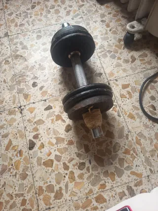 Par de mancuernas de 7 kg cada una, perfectas para entrenamientos en casa. - Peso: 7 kg por mancuerna. - Material: Metal.