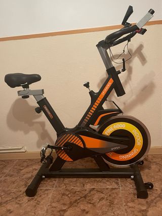 Bicicleta de spinning marca PINE 6000 en excelente estado, casi nueva. Ideal para entrenamientos en casa. - Diseño robusto y estable. - Manillar ajustable en altura. - Sillín cómodo y regulable. - Rueda de inercia para un pedaleo suave. - Pedales con agarre. - Color negro y naranja. Se vende por falta de uso, se compró a una señora mayor para que se moviera pero no la utiliza. *Precio Negociable*