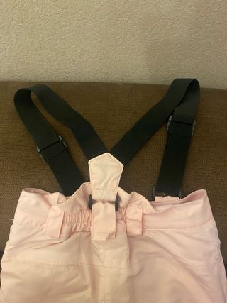 Pantalón de nieve para niña en color rosa, ideal para disfrutar de la montaña. - Tirantes negros ajustables. - Cierre de botón y cremallera. - Bolsillo lateral con cremallera.
