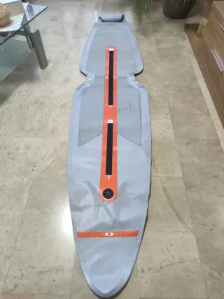 Suelo hinchable diseñado para piraguas de dos personas. Su forma se adapta al interior de la embarcación. - Color gris con detalles naranjas y negros. - Superficie texturizada para mayor agarre. - Incluye válvula de inflado.