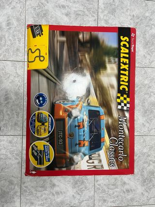 Circuito de Scalextric Montecarlo + algunos extras como el de la foto. Classics con 6 coches. - Escala 1:32. - Incluye circuito con salida Le Mans. - Diseño clásico de coches. Se vende a 125€ con todos los extras y los 2 coches que tenemos porque hace mucho tiempo que no se usa. Pero todo está en buen estado. +75€ por los 6 coches extra.