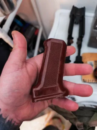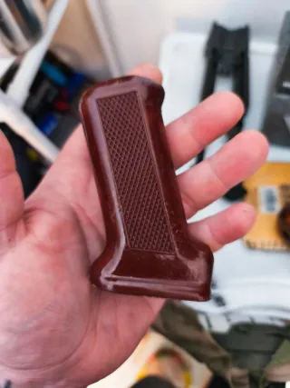 Pistolete de repuesto para réplicas de airsoft tipo AK con sistema GBB. Su diseño ergonómico y acabado en color marrón lo hacen una pieza funcional y estética. - Material: Plástico resistente. - Color: Marrón.