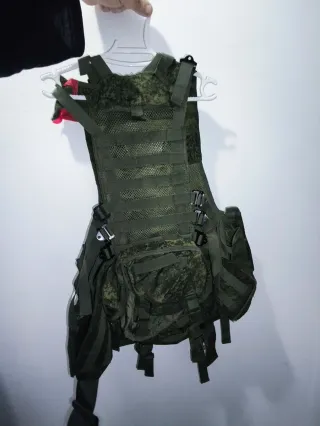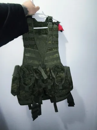 Chaleco táctico de camuflaje ruso, réplica del modelo 6SH117, ideal para airsoft. - Diseño con múltiples bolsillos. - Tejido de malla transpirable en la espalda. - Cintas ajustables para un mejor calce.
