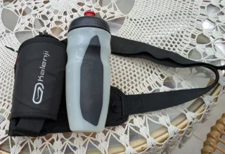 Cinturón de hidratación con botella incluida. - Marca: Kalenji - Color: Negro y gris - Material: Tejido resistente - Diseño ergonómico