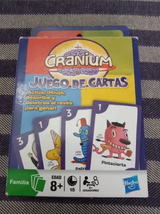 Juego de cartas Cranium, ideal para toda la familia. Incluye instrucciones para jugar. - Edad recomendada: 8+ años. - Número de jugadores: 2+. - Tiempo de juego estimado: 15 minutos. - Contiene diferentes tipos de desafíos: actuar, dibujar, describir y deletrear al revés.