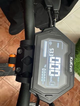 Patinete eléctrico Kukirin G2 Pro en color negro y naranja. Diseñado para ofrecer una experiencia de movilidad urbana. - Diseño robusto y moderno. - 3 modos de velocidad. - Frenos de disco. - Autonomía 60km. - Batería 15.6mah. - Con intermitentes. - No tiene luces. - Tiene llave. - Manillar ajustable. - Ruedas todoterreno. - Cargador incluido.