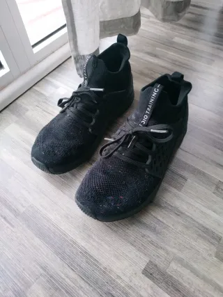Zapatillas deportivas Domyos para mujer, ideales para entrenamiento de cardio. - Diseño en color negro con detalles multicolores. - Tejido transpirable. - Cierre con cordones. Son muy fáciles de poner y quitar, también son cómodas. Me mudo y no me puedo llevar todo lo que tengo, sólo esta semana! Envío solo con inpost