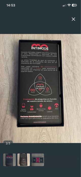 Juego de cartas para parejas llamado Íntimos. - Diseñado para conversaciones y conocerse mejor. - Edición eco friendly game.