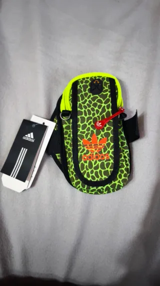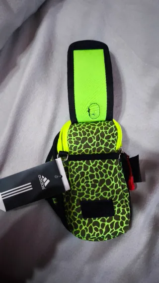 Brazalete deportivo Adidas original. Tiene su etiqueta externa original y su etiqueta interna con el QR y número de artículo original. La etiqueta externa está en chino ya que la compré en un viaje a china en una tienda Adidas y la vi bien de precio pero al final no la usé nunca. - Estampado de leopardo fosforito. - Ribete de color neón. - Logo de Adidas en naranja. - Cierre de velcro.