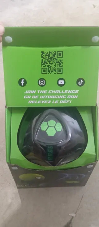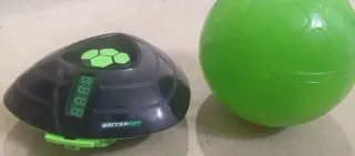 Este Soccerbot es un juguete interactivo con un diseño moderno y atractivo. - Presenta un acabado en negro brillante con detalles en verde neón. - Incorpora una pantalla digital. - Cuenta con botones hexagonales en la parte superior. - Perfecta para entrenamiento de niños - Con todos sus accesorios e instrucciones