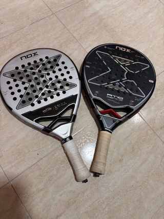 Dos palas de pádel de la marca NOX. Ideales para quien necesite piezas o quiera repararlas. - Marca: NOX - Modelo: AT10 Genius - Color: Plata y negro at10 luxury series