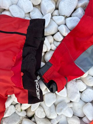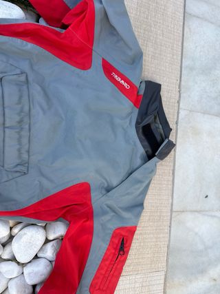 Conjunto de ropa náutica para la clase Optimist. Diseñada para la práctica de vela. Usado - Tejido rojo. - Forro interior negro. - Detalle de logo 'ROOSTer