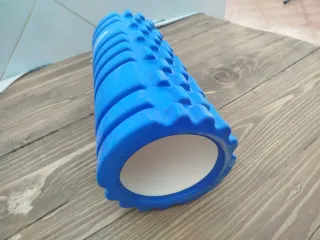 Rodillo de masaje de color azul con textura. - Diseño con relieve. - Material de espuma.