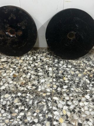 Se venden dos discos de fundición de 12.5 kilogramos cada uno. - Material: Fundición. - Peso: 12.5 kg por disco.