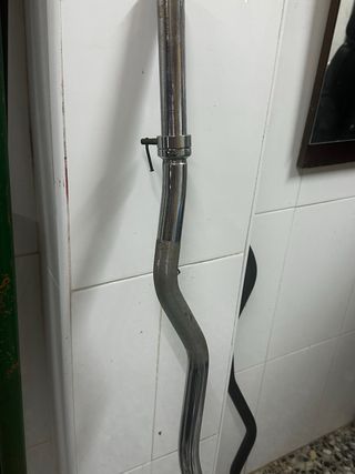 Barra larga de gimnasio. - Longitud aproximada de 1,70 metros. - Acabado metálico plateado.