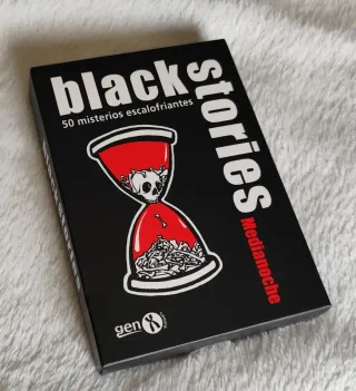 Juego de cartas Black Stories Medianoche, de Gen X, con 50 misterios escalofriantes para resolver. Juego de mesa en el que mediante preguntas cortas debes averiguar qué historia se oculta tras la introducción que se lee. Está nuevo, como se ve en las fotografías. Solamente se ha sacado de la caja para tomar las fotos.