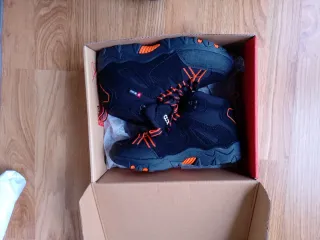 Botas de trekking para niñas y niños con suela de goma y diseño deportivo. - Suela de goma con buen agarre. - Combinación de colores negro y naranja. - Cierre de cordones.