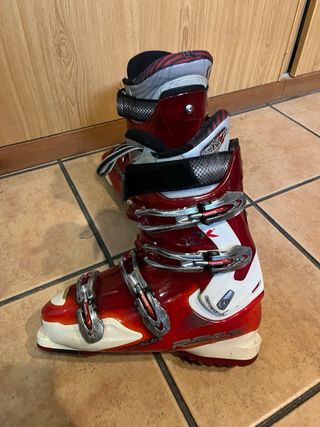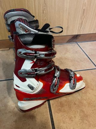 Botas de esquí de color rojo y blanco con un diseño deportivo. - Cierre con 4 ganchos. - Hebillas ajustables. - Detalle de la marca en el lateral.