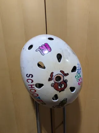 Casco blanco para niños con divertidas pegatinas. - Diseño con dibujos y letras. - Ideal para patinar o montar en bicicleta.