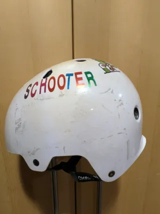 Monopatín listo para usar. Usado pero sólido y resistente. - Las ruedas han sido cambiadas recientemente. - Con marcas de uso, pero de buena calidad. - Incluyo casco negro niño, vale para bici también (pendiente confirmar talla)