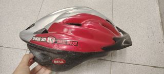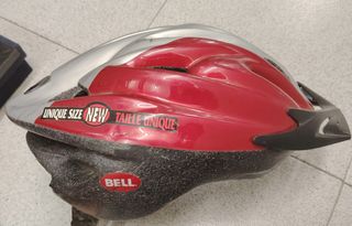 Casco para bicicleta Bell, de adulto, en color rojo y gris. Está en buen estado, aunque tiene algunas señales de uso. - Talla única. - Marca Bell. - Color rojo y gris.