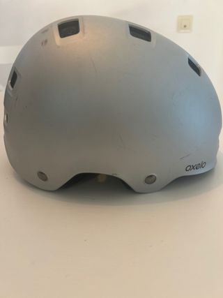 Casco de la marca Oxelo en color gris, ideal para patinar o montar en bicicleta. Diseñado para ofrecer protección y comodidad. - Talla S (52-55 cm). - Color gris.