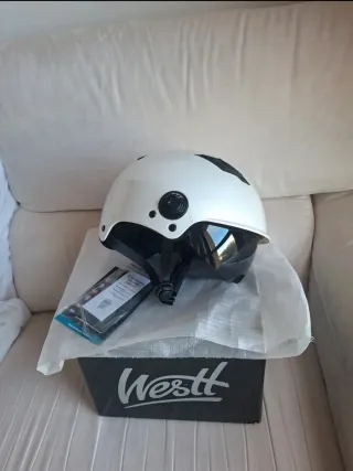 Casco de la marca Westt en color blanco, ideal para patinete o bicicleta. Cuenta con un visor integrado. - Color blanco. - Marca: Westt. - Incluye visor. - Acolchado interior para mayor comodidad.