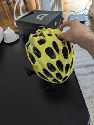 Casco de bicicleta alto de gama Catlike Mixino, hace unas temporadas lo portaba el Movistar team. No tiene golpes o accidentes. Usado pero en buen estado. Invluye algunas almohadillas de repuesto. TALLA M/D de 55 a 57 centimetros