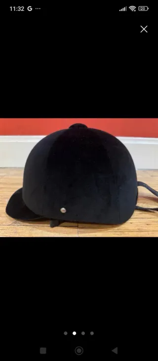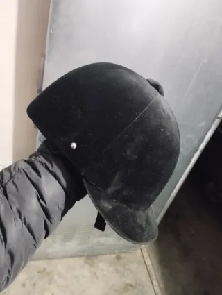 Casco de hípica de terciopelo negro. SE HA USADO UNA VEZ, SIN DESPERFECTOS - Cubierta de terciopelo. - Visera. - Correa de sujeción.