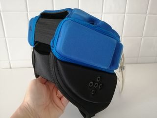Casco de hockey sobre patines, talla M. A estrenar. - Color azul. - Incluye pantalla protectora transparente.