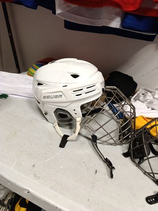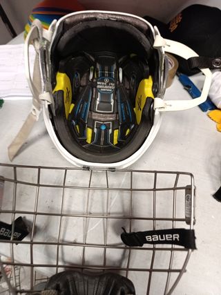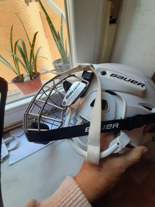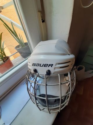 Casco de hockey de la marca Bauer, talla ajustable. En buen estado, aunque la rejilla esta un poco oxidada, pero se puede canviar o quitar.