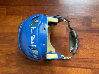 Casco de hockey sobre patines en talla S y color azul. Incluye pantalla protectora. - Talla S - Color azul - Pantalla protectora transparente - espuma protectora falta pegar