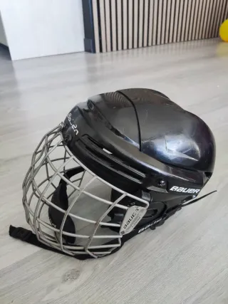 Casco de hockey de la marca Bauer, diseñado para proteger la cabeza. - Color negro. - Incluye rejilla protectora frontal.