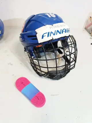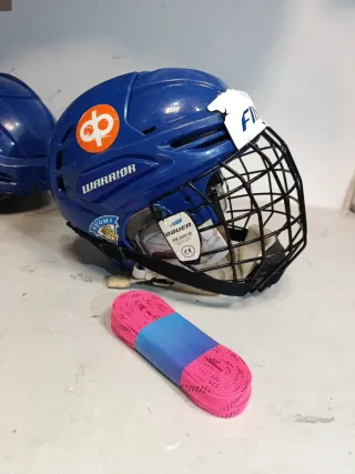 Casco de hockey Warrior KROWN PX3. Talla S 53/57cm Cordones de regalo - Color azul. - Incluye protector facial negro. - Adhesivo de Finnair en la parte frontal.