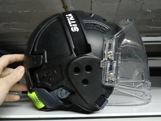 Casco de hockey Sitka en talla S. Diseñado para ofrecer protección y comodidad. - Color negro. - Visera transparente incluida. - Acolchado interior.