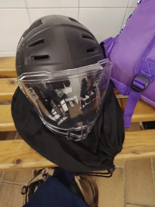 Casco de hockey sobre patines de la marca SITKA. - Espuma interna de recambio nueva. - Color negro. - Visera transparente incluida. - Cierre ajustable.