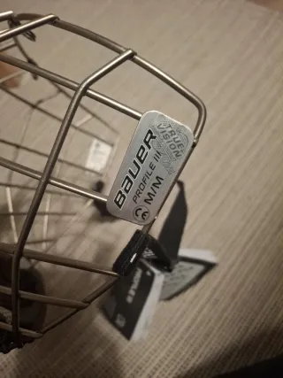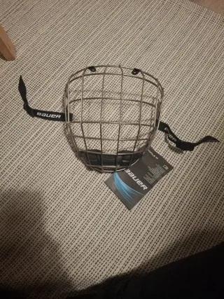 Rejilla protectora para casco de hockey de la marca Bauer. - Fabricada en metal. - Incluye correas de sujeción.