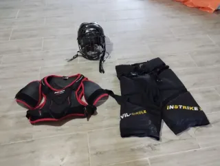 Conjunto completo de equipación de hockey prácticamente sin uso - Casco. - Espinilleras. - Guantes. - Pantalon - Coderas. - Bolsa de transporte.