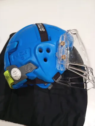 Casco de hockey en talla S. Diseñado para proteger la cabeza durante el juego. - Color negro. - Visera transparente incluida. - Cierre ajustable.