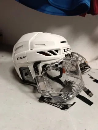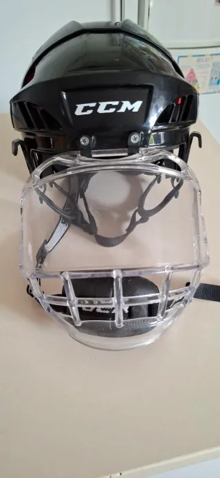 Casco de hockey CCM con protector facial transparente. Ideal para proteger durante el juego. - Marca: CCM - Tipo: Casco de hockey - Protector facial: Transparente