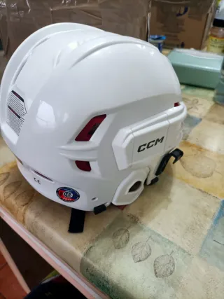 Casco de hockey CCM en color blanco. - Marca CCM visible en el lateral. -talla S - Certificación CE y CSA.