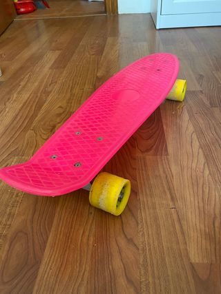 Vendo penny board en buen estado. Es ligero, fácil de transportar y perfecto para moverse por la ciudad o empezar en el mundo del skate. Tiene signos de uso (como se ve en las ruedas), pero funciona perfectamente y va súper fluido. 💗 Tabla: Rosa 💛 Ruedas: Amarillas 🔧 Ejes y ruedas en buen estado 📦 Entrega en mano o envío a cargo del comprador Vendo casco aparte. Preguntad sin compromiso.